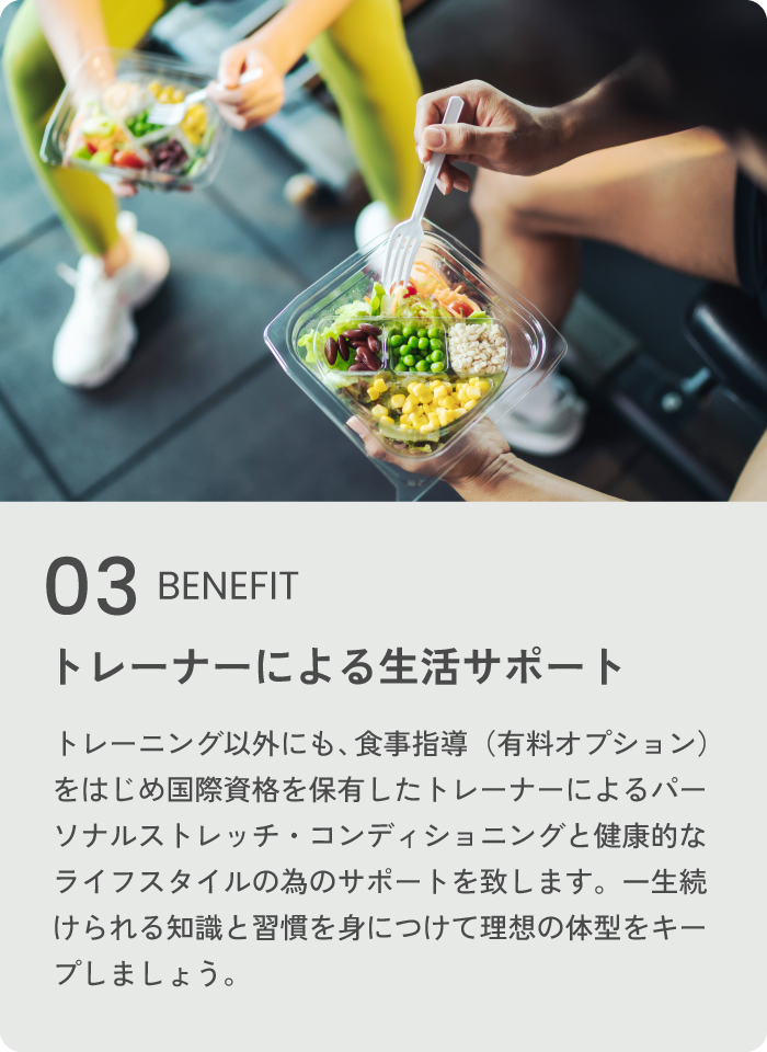 経験豊富なトレーナーが、健康的で効果的な食生活をサポートし、あなたの目標達成をより確実なものにします。