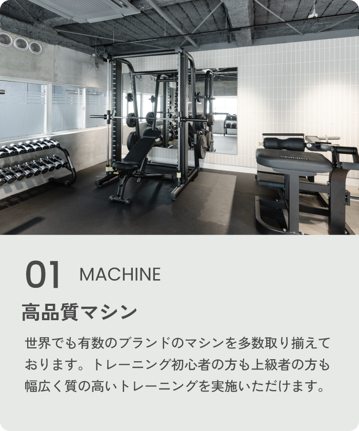 高品質なマシンを使用したトレーニングで、あなたの体づくりをサポート。
